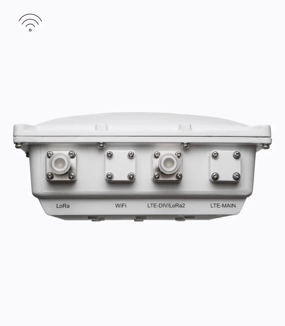 Dieses Outdoor-Gateway für LoRaWAN-Funknetze* wurde speziell für den Betrieb im Außenbereich entwickelt. Das Gerät empfängt Messdaten von Funksensoren im LoRaWAN-Netzwerk, verschlüsselt sie und leitet sie über Netzwerkkabel an einen Server weiter, wo sie verarbeitet werden können.