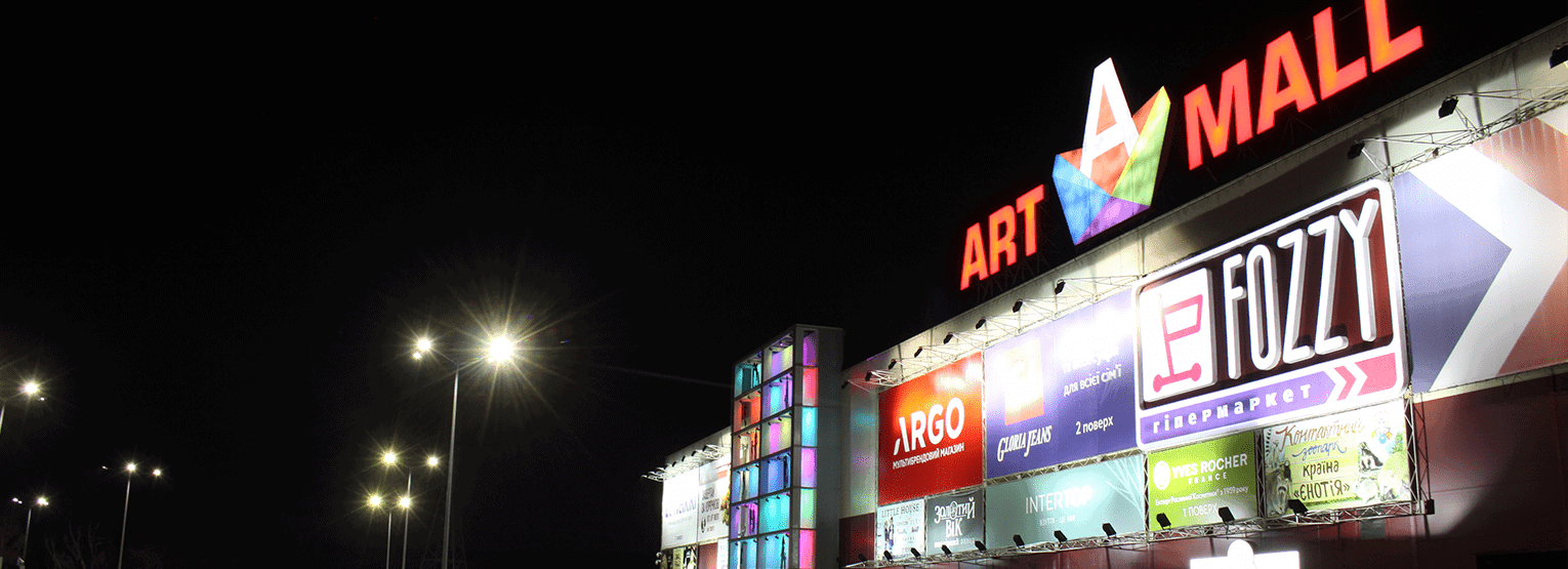 The ART MALL Shopping and Entertainment Center received a smart outdoor lighting system with remote control, diagnostics, and automatic dimming. It took us twenty-one days to complete the project. We replaced the old HPS lamp lumiaires with sixty-four new Jooby Avenue luminaries. Now lighting for the 1300-lot car park consumes 31.4 kW/h per day, which is 82% less than before. The network of IoT Ukraine, a LoRaWAN® operator, is used to control the luminaries.