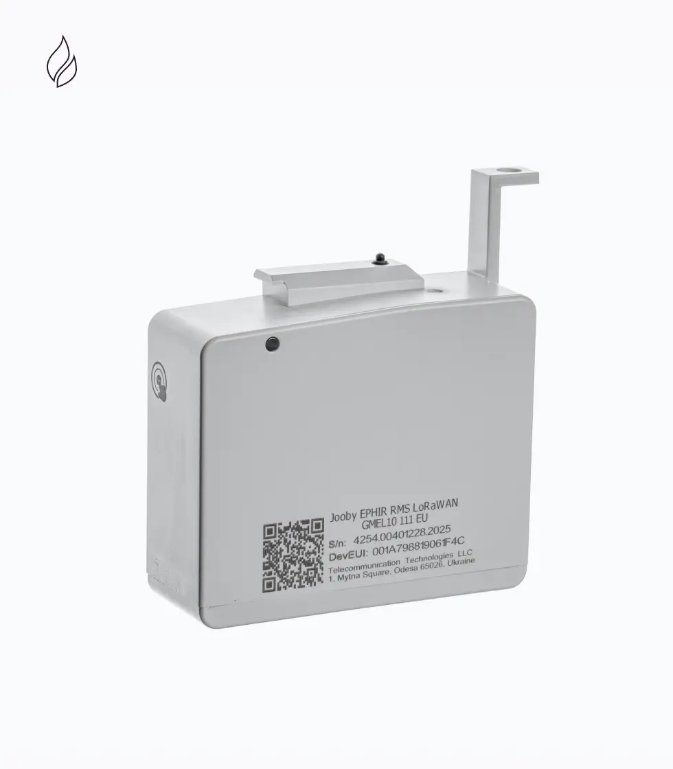 Система оснащена интеллектуальным сенсором, который фиксирует вращение счетного механизма и реагирует на попытки вмешательства, включая снятие модуля или воздействие магнитом. Передача информации осуществляется по беспроводной сети LoRaWAN с настраиваемым интервалом передачи данных.