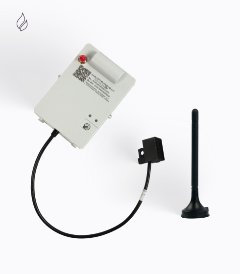 Радиомодуль Jooby с интеллектуальным сенсором и внешней антенной для газового счетчика Samgas. Предназначен для автоматического считывания показаний и передачи данных по протоколу MQTT через сеть NB-IoT.