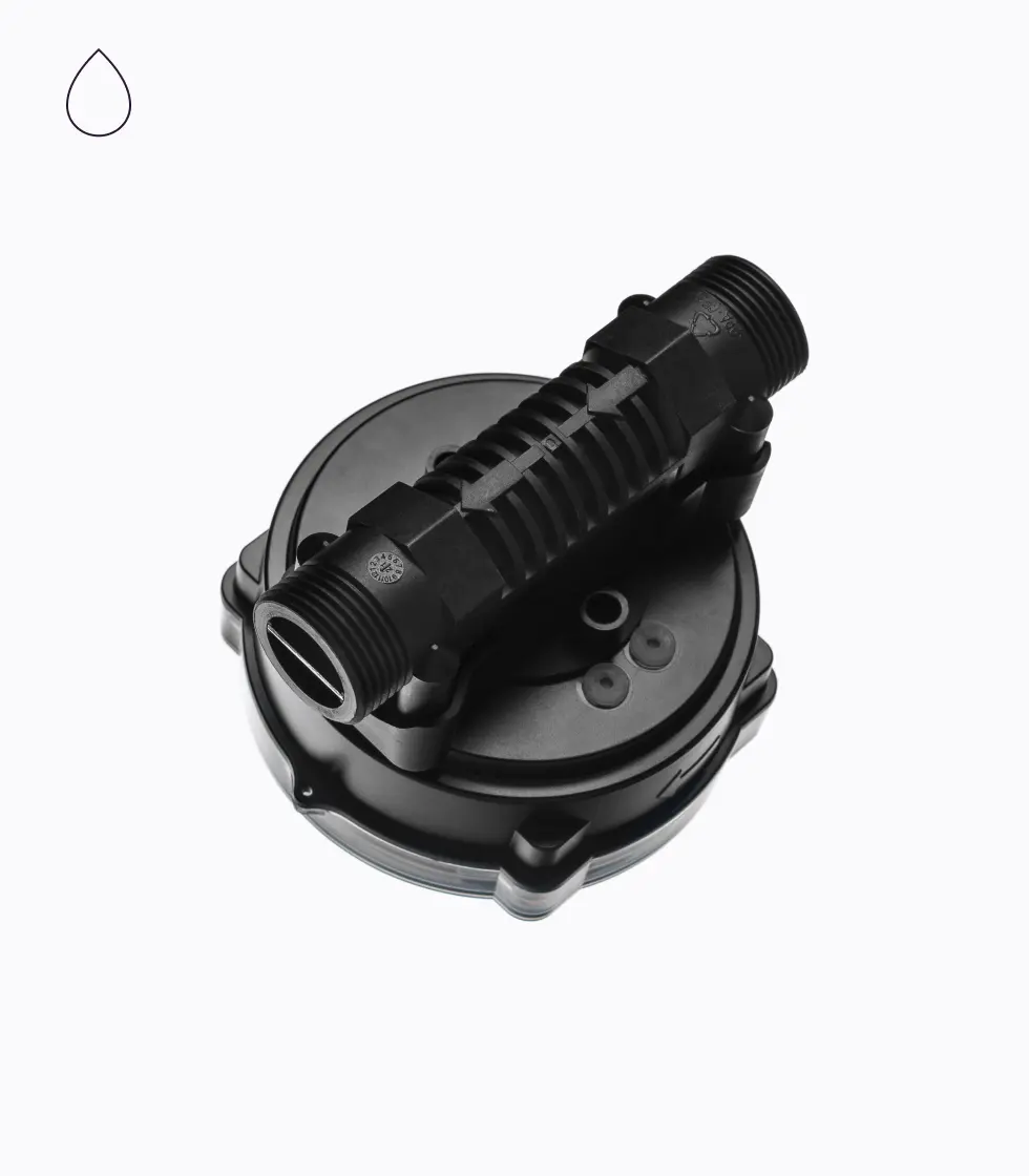- 9- и 5-значный двухстрочный ЖК-дисплей, общий объем и индикация мгновенного расхода Устойчивый композитный корпус с использованием PPA-GF40