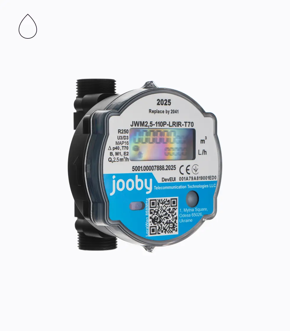 Ультразвуковой счетчик воды JOOBY JWM — это высокоточное устройство, предназначенное для измерения расхода холодной и горячей воды в домах, офисах и промышленных помещениях. Благодаря ультразвуковой технологии счетчик обеспечивает точные измерения без подвижных деталей. Снабжен двухстрочным ЖК-дисплеем для удобного отображения данных, а также подключается к сетям LoRaWAN и IoT для мониторинга показаний в реальном времени.